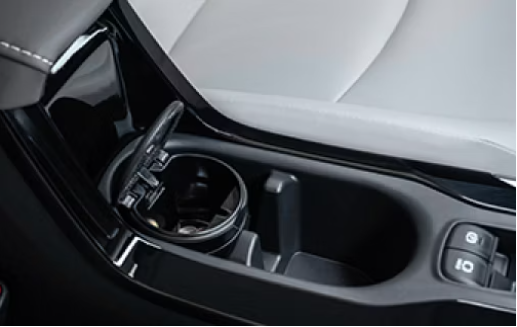 Self-contained coin holder/ashtray cup fits conveniently inside the cupholder.